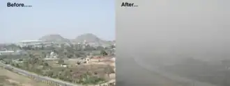 In some countries in West Africa, the heavy amount of dust in the air can severely limit visibility and block the sun for several days,[8] comparable to a heavy fog. This effect is known as the Harmattan haze. It costs airlines millions of dollars in cancelled and diverted flights each year.[9][10] When the haze is weak, the skies are clear.[11] The extreme dryness of the air may cause branches of trees to die.[12]