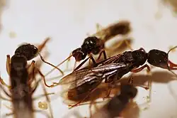 - ^ Crosland, Michael W. J. (1995). "Nest and colony structure in the primitive ant, Harpegnathos venator (Smith) (hymenoptera: formicidae)". Pan-Pacific Entomologist. 71: 18–23.