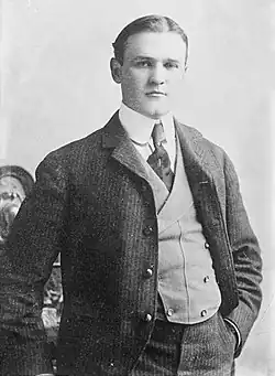 In March 1922, Wilson fought and lost a highly publicized "duel of fists" with landscape painter Theodore Morrow Criley. Details of their long-standing feud made banner headlines in the San Francisco press and were given prominent coverage across the country on the International News Wire, including stories in the Los Angeles Times and New York Times.[11][12][13] It was revealed that their argument originated with "a light romantic" love scene between Criley and Wilson's wife in the 1921 production of Pomander Walk at Carmel's Forest Theatre.[10] Wilson sent Criley a series of accusatory letters, including a 24-page invective, and demanded satisfaction in this "affair of honor". He spent three months in Honolulu undergoing physical training and instruction in boxing, then he returned and the two men met on "a high cliff overlooking the sea". Criley thrashed Wilson in ten minutes.[14][15]