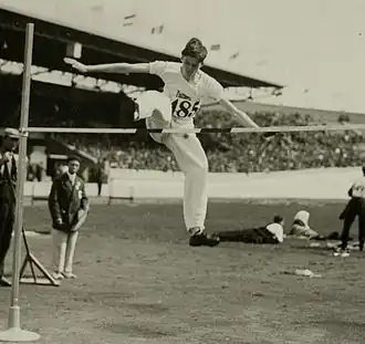 In 1927 Simmons a pupil at Taunton School won the Public Schools title.[1] At the age of 17 Simmons competed for the London Athletic Club and finished third behind Claude Ménard in the high jump event at the 1928 AAA Championships.[2][3][4] Shortly afterwards he represented Great Britain at the 1928 Summer Olympics in Amsterdam, Netherlands, where he finished in 11th place.[5]