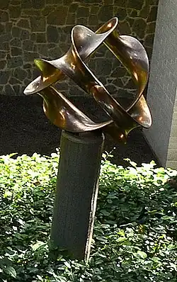 The house embodies both a vertical and horizontal extension of space. The level changes and central open well provide a visual link from top to bottom. Large areas of glass and projecting terraces draw the eye out from each level to the natural landscape setting. Materials include board formed reinforced concrete, rubble stonework, white concrete block work and Tasmanian Oak boarded ceilings. The integrated artworks include K Nolan, Frank Stella, H Frankenthaler, work by Sam Frances, a Charles Perry sculpture, Max Bill, several "Positive-Negative" sculptures by Norman Carlberg and two Calder stabiles. The garden contains a sculpture by the Los Angeles sculptor Eric Orr.[1][8]