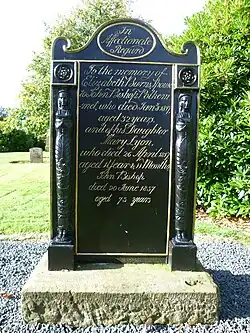 - Elizabeth Burns (1784—1817), illegitimate daughter of poet Robert Burns. She married John Bishop, overseer at the Polkemmet estate, resided at the estate's 'half way house' on the existing main road B7066. Buried in Whitburn Parish Church graveyard (white headstone still in place).