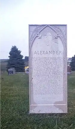 - Alexander family burial plot marker, Lee Lawrie, sculptor, c.1924, Syracuse, NE