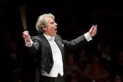 In 1986, Haenchen became music director of the De Nederlandse Opera (DNO) in Amsterdam and chief conductor of the Netherlands Philharmonic Orchestra (NPO) and the Netherlands Chamber Orchestra.[4] During his tenure in Amsterdam, DNO became renowned for its high-quality ensemble productions and innovative stagings. Haenchen was particularly associated with the German repertoire: Richard Strauss, Mozart, and Wagner, but he also conducted opera of Verdi, Bartók, Tchaikovsky, Puccini, and Gluck. After the 1999 Ring cycle, Haenchen left his post but has continued as a guest conductor. With the NPO, the newly formed Netherlands Philharmonic Orchestra quickly rose in stature, under his leadership, not only in its opera performances but also in symphonic concerts, recordings, and foreign tours. Haenchen resigned his position in September 2002 to protest budget cuts. However, he frequently returned to the NPO and was appointed as their honorary conductor in March 2023.