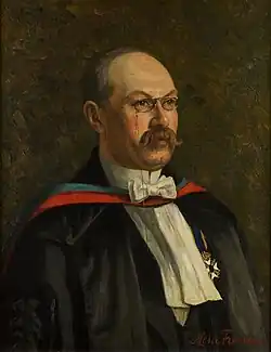 In 1901, he joined the University of Groningen as professor of physiology.[2] In 1911 he was instrumental in opening a dedicated physiological institute, and two years later chaired the 25th International Physiological Congress in Groningen.[1][2] Between 1902 and 1904 he published Osmotischer Druck und Ionenlehre in den medecinischen Wissenschaften ("Osmotic pressure and ion science in the medical sciences").[2][4][5][6] Work on these books had started while still in Utrecht.[1] Hamburger was serving as rector magnificus of the university when in 1914 it celebrated its 300th anniversary.[1] Throughout his academic career he emphasised the importance of physical chemistry in health science, and he actively opposed vitalism (i.e. the view that living organisms are somehow governed by different principles from inanimate substances).[1]