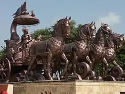 During the Vedic era, Haryana was the site of the Kuru Kingdom, one of India's great Mahajanapadas. The south of Haryana is the claimed location of Manu's state of Brahmavarta.[22] The area surrounding Dhosi Hill, and districts of Rewari and Mahendragarh had Ashrams of several Rishis who made valuable contributions to important Hindu scriptures like Vedas, Upanishads, Manusmriti, Brahmanas and Puranas.[23] As per Manusmriti,[24] Manu was the king of Brahmavarta, the flood time state 10,000 years ago surrounded by oldest route of Sarasvati and Drishadwati rivers on the banks of which Sanatan-Vedic or present-day Hindu ethos evolved and scriptures were composed.