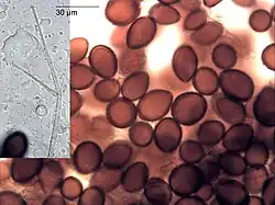 | Hyphal growth (inset) and ascospores of Harzia acremonioides | |