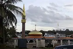 Hassanal Bolkiah Mosque, Pekan Tutong (Malay: Masjid Hassanal Bolkiah, Pekan Tutong)[2] or unofficially Hassanal Bolkiah Mosque,[3] is a mosque located about 1 kilometre (0.62 mi) from Tutong, the town of Tutong District in Brunei. The mosque was opened in 1966; and it could hold up to 1,000 worshipers and has amenities like a library, a multipurpose hall, and a chamber for burial preparations.[2]