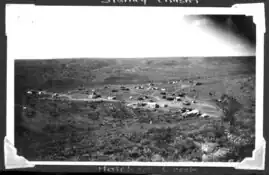 This increased population at the field led to difficulties obtaining water and the nearby Kangaroo Waterhole almost dried up and many of the miners experienced dysentery and other stomach disorders.[9] One of the residents and miners' during this period was Gloria Ouida Lee who worked alongside her husband Fred 'Lofty' Purdy.[10]