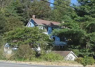 The three-story wood-framed house is three bays wide and one bay deep on a 9-acre parcel.