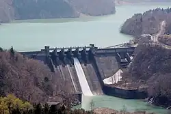 The Hatogaya Dam is a gravity dam on the Shō River about 2 km (1.2 mi) south of Shirakawa in Gifu Prefecture, Japan. It was constructed between 1954 and 1956. The dam has an associated 43 MW hydroelectric power station which was commissioned in 1956. Of the nine dams on the Shō River it is the eighth furthest downstream.[1]