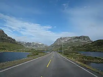 Haukelifjell is a mountain area and a mountain pass in South Norway. The area is located in Vinje municipality in the county of Telemark and Odda municipality in the county of Hordaland. The mountain area partially overlaps the Hardangervidda mountain plateau, and is defined by the villages of Røldal to the west and Haukeli in the east.[1]
