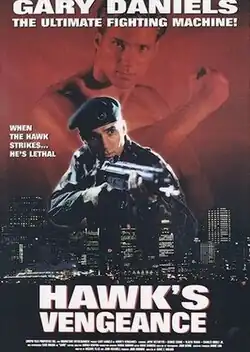 Hawk's Vengeance is a 1996 Canadian-American action film directed by Marc F. Voizard, starring Gary Daniels, Jayne Heitmeyer, Cass Magda and George Chiang. A spin-off/sequel to Snake Eater III: His Law (1992) and the fourth installment of the Snake Eater film series, it introduces "Hawk" Kelly, the British-raised stepbrother of the previous films' "Soldier" Kelly, who investigates his sibling's mysterious death amidst a gang war between ethnic Chinese and white skinheads. The series' usual star Lorenzo Lamas does not appear, and his role is recast with another actor during a brief expository scene.[2]