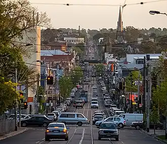 ![]() Hawthorn's Glenferrie Road shopping strip, facing north towards Kew | |||||||||||||||