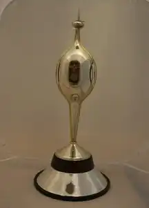 The Hawthorn Memorial Trophy is an annual award honouring the achievements of a British or Commonwealth driver in Formula One motor racing.[1][2] The Royal Automobile Club (RAC) launched it on 1 May 1959 as a memorial for Mike Hawthorn,[3] a racing driver who retired immediately after becoming the first British Formula One World Drivers' Champion in the 1958 season as a result of the death of his teammate Peter Collins.[4][5] The gilt and silver trophy,[6] created by K. Lessons of the Goldsmiths Company in 1960,[7][6] is mounted on a wooden pedestal and features chequered flags and the Union Flag.[8] It is presented to the most successful British or Commonwealth driver of the previous year's Formula One World Championship.[9] The trophy was initially presented at an annual ceremony held at the RAC's headquarters and club in London,[10][11] but Motorsport UK currently awards it at the following year's British Grand Prix at Silverstone Circuit.[12][13] The award is considered prestigious in the motor racing world.[9][14]