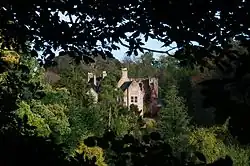 Hawthornden Castle is located on the River North Esk in Midlothian, Scotland. The castle lies a mile to the east of Roslin at grid reference NT287637, and is just downstream from Roslin Castle. Hawthornden comprises a 15th-century ruin, with a 17th-century L-plan house attached. The house has been restored and now serves as a writer's retreat. Man-made caves in the rock beneath the castle have been in use for much longer than the castle itself.[1]