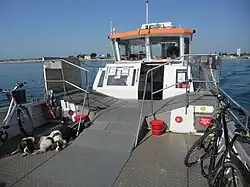 The Hayling Island Ferry company took over operation of the ferry in 1985 using the Hayling Enterprise. Hampshire County Council wished the service to be re-instated and was prepared to provide a subsidy.[2] Initially it was necessary to run onto the beach as the pontoon on the Eastney side had deteriorated so badly . After the restoration of the pontoon the company purchased the 65 seat Pride of Hayling which entered operation in 1989.[4] In 2009 after 28000 hours of service the Pride of Hayling had its engines renewed.[4] Various maintenance, subsidy, operating and financial difficulties and incidents accumulated to bring the company into receivership.