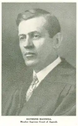 Haymond Maxwell (October 24, 1879 Clarksburg, West Virginia – December 19, 1958 Clarksburg, West Virginia) was an American lawyer, politician, judge, and justice of the Supreme Court of Appeals of West Virginia.