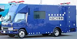 Hazmat vehicles also often come with a portable lab complete with sinks and fume hoods that allow for the analysis of samples collected at the scene.[1] Essentially a mobile laboratory, this allows early on-site scientific analysis and monitoring to speed up the detection process and allow firefighters and other emergency services to provide the correct response for the particular incident.