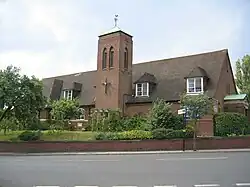 No suburban settlement is shown near Hazelwell on the 1834 Ordnance Survey maps, but by 1888 a small village had begun to form around Hazelwell Street and Pershore Road, immediately west of Hazelwell Hall, then known as Stirchley Street. By 1906 houses, shops, and amenities had spread out linearly along Pershore Road.[3] By the late 1930s a smaller cluster of shops and houses had formed to the east of Hazelwell Hall along the end of Vicarage Road.