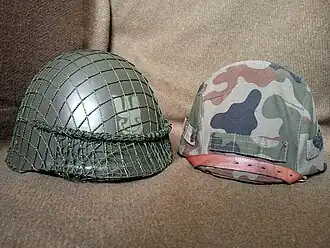 For camouflaging purposes, helmets wz. 67 and wz. 67/75 are equipped with a masking net and a special face veil.[5] In helmets for land forces, the mesh and veil were khaki, and in blue-gray helmets - in a similar color. In winter, white covers were used. Currently, the camouflage nets have been replaced by camouflage covers in wz. 93 Pantera camo.
