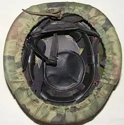 It was the first composite Polish Army helmet (before it, there was also a prototype, the so-called Aleksander Dutka helmet). The wz. 93 helmet was intended to replace older steel helmets wz. 50 and wz. 67. The shape of the shell is quite original, the liner is made of artificial leather dyed black.[1] The helmet was painted green and came in two sizes: small (M) and large (D). The wz. 93 helmet can be fitted with camouflaged helmet covers (wz. 89 Puma and wz. 93 Pantera).[2]