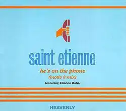 "He's on the Phone" is a song by British pop group Saint Etienne in collaboration with French singer-songwriter Étienne Daho, released in October 1995 by Heavenly and MCA as a single from their third compilation album, Too Young to Die (1995). A fast-paced dance track, it is one of Saint Etienne's biggest hits, reaching number 11 on the UK Singles Chart, number 31 in Iceland, number 41 in Sweden and number 33 on the US Billboard Dance Club Songs chart. The lyrics tell of an "academia girl" trying to escape from a relationship with a married man: He's on the phone / And she wants to go home, / Shoes in hand, / Don't make a sound, / It's time to go. At the centre of the track is a spoken-word section by Daho.