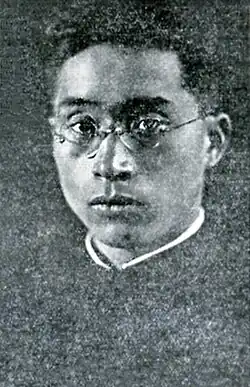 He studied at Shandong No. 6 Provincial High School in Heze,[3] before being admitted to the preparatory school of Peking University in 1915, where he became an active participant of the New Culture Movement. He was especially interested in foreign languages, and in April 1917 his translation of an article on money by Samuel Smiles was published in Chen Duxiu's influential magazine New Youth. He entered Peking University in 1918, majoring in philosophy. He soon joined the Xinchao (New Tide) Society founded by his close friend Fu Sinian, who was to become an eminent educator and scholar. He published many articles in the Xinchao journal.[2]