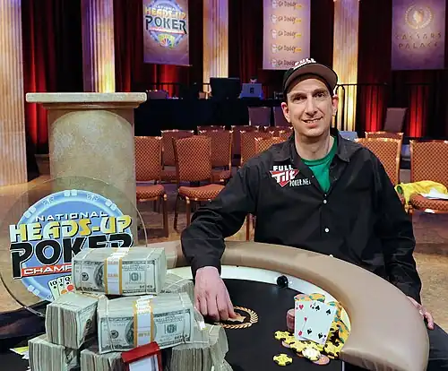 Heads-up poker is a form of poker that is played between only two players. It might be played during a larger cash game session, where the game is breaking up and only two players remain on the table, or where two players are trying to start a game and playing heads-up while waiting for other opponents. It is also a necessary phase in most sit-and-go (SNG) poker tournaments; the single remaining tournament winner will at some point have to face only a single opponent. Alternatively, heads-up poker may be played on purpose, either in a cash game format, or as a SNG, where two players play a winner-take-all tournament for a fixed, previously agreed upon amount of money. On larger online poker rooms and during certain tournament series, one may stumble upon larger heads-up tournaments, usually in the shoot-out format. Usually, in order to ensure the fairness of the game, all players finishing at the same level of the tournament bracket will be paid out the same amount of money, no matter what their finishing place is.