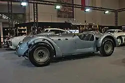 The Healey Silverstone is an open, two-seat sports car produced by the Donald Healey Motor Company beginning in 1949. It is named for the Silverstone Circuit racetrack, where it appeared on its second competition outing.[2][5] The car has a narrow roadster body and cycle wings. Designed as a dual purpose car for both road and track, the Silverstone became popular in club racing.[1][6][7][8]