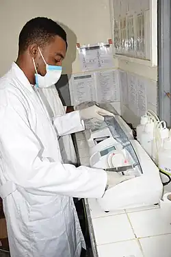 HIV/AIDS is the second cause of death in Cameroon in 2018 after malaria. Progress had been made in AIDS-related death and new infections in Cameroon; reduction in the number of deaths from 22,000 to 18,000 and the number of new infections from 36,000 to 23,000 between the years 2010 and 2018. In 2018, 540,000 people were living with HIV and the prevalence among adults (15–49 years) was 3.6%.[15] Moreover, the incidence among all people of all ages in Cameroon is 1.02% in 2018.[15] In Sub Saharan Africa, the incidence (new infections per 1,000 of population) among adults (15–49 years) declined from 3.39 in 2010, 2.49 in 2015 to 2.14 in 2017 and globally for adults it also declined from 0.44 to 0.40 between 2015 and 2017.[16]