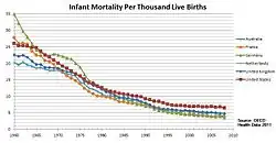 - ^ Infant mortality definitions differ by country. For example, the United States includes infants under 500 g, while Germany does not. Social factors also influence outcomes.