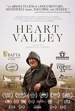 Heart Valley is a 2022 short documentary film about Welsh shepherd Wilf Davies. Directed and produced by filmmaker Christian Cargill, the film had its world premiere at the Tribeca Film Festival on June 9, 2022[1] where it won the award for Best Documentary Short. It first broadcast in the UK on BBC Two Wales and BBC iPlayer on July 26, 2022[2] and released online with The New Yorker on December 2, 2022. The documentary won the BAFTA Cymru Award 2023 for Short Film and was nominated for The Grierson Award 2023 for Best Documentary Short.[3] The Hollywood Reporter named Heart Valley as one of their Top 23 Short Documentaries of 2022[4] and it was one of 98 films to qualify for the 95th Academy Awards for Best Documentary Short.[5]