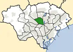 The Heath ward boundaries are coterminous with the community. It is bordered to the north by Ty-wern Road (Rhiwbina ward) and the Cardiff City Line (Llanishen ward), to the east by the Cardiff to Caerphilly railway line (Cyncoed ward), to the south by the Western by-pass (Gabalfa ward) and to the west by the A470 road (Whitchurch & Tongwynlais ward).[1] The Heath ward includes the University Hospital of Wales and the large adjacent area of greenery, Heath Park.