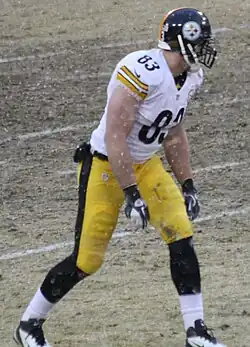 Earl Heath Miller Jr. (born October 22, 1982) is an American former professional football player who was a tight end for the Pittsburgh Steelers of the National Football League (NFL) for 11 seasons from 2005 to 2015. Miller played college football for the Virginia Cavaliers, earning unanimous All-American honors and winning the John Mackey Award. The Steelers selected him in the first round with the 30th overall pick of the 2005 NFL draft.