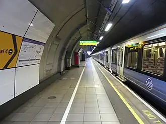 ![]() Heathrow Terminal 4 station platform as seen in June 2022 | |