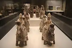 In China, heavy cavalry was developed during the Han dynasty (202 BC–220 AD),[14] with armoured lancers becoming widespread during the Western Han era. Armoured cavalry, with both soldier and steed clad in complete armour, were employed in the late Han dynasty, and became widespread in the 4th century AD, where it was the main striking force of the armies of the Northern dynasties of China (4th century to 6th century.) During the Tang dynasty (618–907) the importance of infantry and lighter-armed cavalry and infantry increased while that of the armoured cavalry decreased, with horse armour seldom used. However, armoured cavalry were again used by the Song dynasty (960–1279) and its enemies, including the Jin, Xi Xia, Mongols, and Khitans.