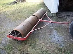 The roller is an agricultural tool used for flattening land or breaking up large clumps of soil, especially after ploughing or disc harrowing. Typically, rollers are pulled by tractors or, prior to mechanisation, a team of animals such as horses or oxen. As well as for agricultural purposes, rollers are used on cricket pitches and residential lawn areas.