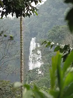 Hebbe Falls is situated at 13°32′29″N 75°43′30″E / 13.54139°N 75.72500°E about 10 km away from the hill station Kemmangundi in Karnataka, India. The waterfall is inside a coffee estate. Hebbe Falls gushes from a height of 551 ft[1] in two stages to form Dodda Hebbe (Big Falls) and Chikka Hebbe (Small Falls.)