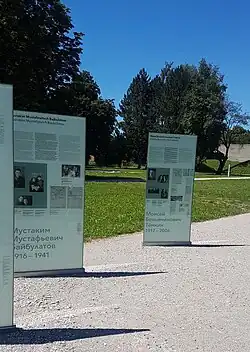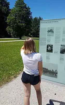 On May 2, 2014 the Dachau Concentration Camp Memorial Site opened a redesigned memorial site upon the grounds.[17] Since then, several information boards have been erected on the site to inform visitors about its history in several languages. The installation measures forty meters in length, providing enough space to list all the names of the estimated 4,000 victims. The Dachau Concentration Camp Memorial Site projects that 1,500 to 2,000 names can be identified in the long term. As of June 2020, there are currently 816 names on the installation.[6]