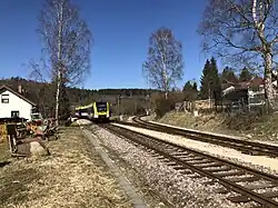 Until the timetable change in 2020, Regio-Shuttle 1 diesel multiple units in the red-beige livery of the Hohenzollerische Landesbahn operated on the line. Now Lint 54 sets in the Baden-Württemberg state livery are used for passenger services.