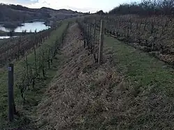 In 1984, 1,000 grape vines were planted on a southwest-facing slope on the north side of an artificial lake. The number has later been increased to 3,000, of which half are Marechal Foch and half are Léon Millot.[7]