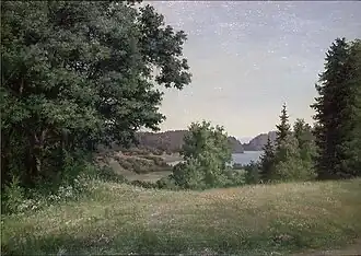 Lund is particularly known for her portraits,[3] and she created many commissioned works for Eidsvollsbygningen gallery depicting members of the National Assembly.[1] She also painted landscapes, including Landskapsstudie Borrevannet (Lake Borre Landscape Study, 1878), which is displayed in the National Museum of Art, Architecture and Design.[1][4]