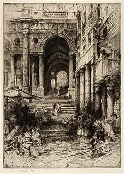 His work was exhibited at the Royal Academy, Royal Society of Painter-Etchers and Engravers, Royal Watercolour Association and at the Paris Salon.[4] His work is also held in the permanent collections of several institutions worldwide, including the Princeton University Art Museum,[2] the La Salle University Art Museum,[5] the British Museum,[6] the Kirkcudbright Galleries,[7] the Harvard Art Museums,[8] the Detroit Institute of Arts,[9] the Nelson-Atkins Museum of Art,[10] the University of Michigan Museum of Art,[11] the Smart Museum of Art,[12] and Amgueddfa Cymru – Museum Wales.[13]