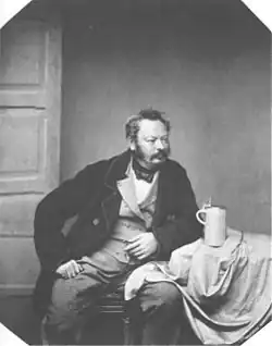 Bürkel was born in 1802 at Pirmasens, in Rhenish Bavaria. He was designed for trade, but devoted every spare minute to drawing. His father's house, being an inn, presented him with subjects in great variety, and so early as his eleventh year he came into conflict with the police on account of a caricature of Napoleon. At fifteen he entered the law, but at twenty he was incited to turn to art, and learned the technicalities of oil painting among friends at Munich, Schleissheim, and in the Netherlands. In time he took to depicting popular and military scenes, cattle, and landscapes, especially winter landscapes. He spent from 1823 to 1832 in Rome, and became on his return a popular artist, famous for his imagination and humour. He was an honorary member of the Academies of Munich, Dresden, and Vienna. He died at Munich in 1869.[1]