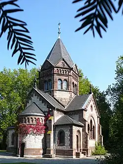 His most notable buildings include:[3] a villa for the lawyer, Carl Ludwig von Bar, who served on the Hague Tribunal; the cemetery chapel at the Stadtfriedhof in Göttingen; cadet housing for the Corps Saxonia Göttingen; and an observation tower known as the Bismarckturm.
