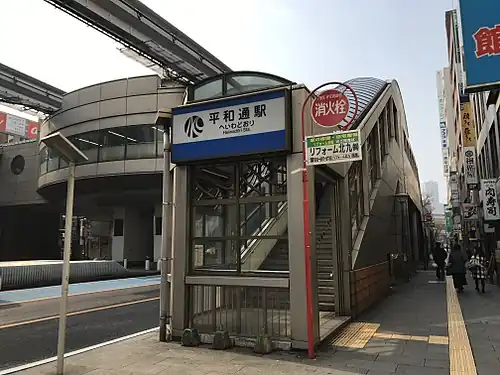 Heiwadōri Station (平和通駅, Heiwadōri-eki) is a Kitakyushu monorail station in Kokura Kita-ku, Kitakyūshū, Fukuoka Prefecture, Japan.[1]