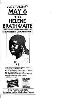 Nomsa was an advocate for the removal of asbestos from schools in New York City public schools. In 1985 the Journal of Law and Education highlighted Helene Brathwaite's asbestos removal advocacy work in the New York City Public Schools in New York City. Her work and efforts along with others led to shut down of unsafe primary and grade schools in the 1970s.[9] She was President of the Parents Teacher Association and Chairperson of the Parents' Committee of PS 185/208. Her children and her neighbors' children attended the schools that were shut down due to the hazards of asbestos. It was known that 20% of the schools in New York City had asbestos, and the risk of mesothelioma to younger children had not been properly addressed.[9][10][11]