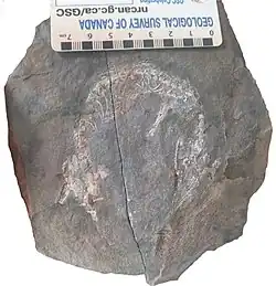 The holotype fossil, SAM-PK-1070, is preserved in negative relief and has a partial skull, mandibles, axial skeleton, pectoral and pelvic girdles, osteoderms, and femur elements. The preserved femurs include a complete left and partial right.[1][5][3] Partial skull elements present are the maxilla, quadrate, parabasisphenol, jugal, quadratojugal, mandible, and the palate. Little of the skull roof remains in this specimen. The alveolar region of the mandible has five teeth preserved in it.[1]