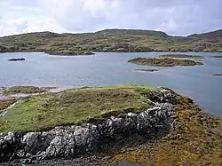 ![]() The Sound of Gighay looking northwest from Càrais on Hellisay | |